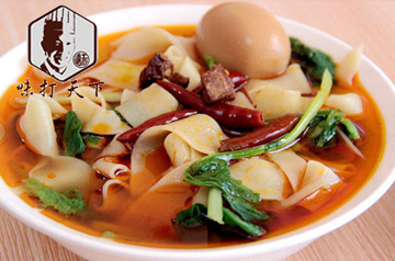 牛肉板面历史悠久,是源自安徽省和河南新野的汉族特色小吃。曾因诸葛亮一把火烧出了名气的三国历史名城新野有一道颇具历史渊源的地方美食——新野板面(又称张飞板面)。它以爽口、耐嚼、香中泛辣、辣中透香而享誉周边。后来由于其口味独特,被迅速传入各地。实惠加美味是地道牛肉板面的特色。牛肉板面特色小吃的口味关键在于那里边的几十种的配料,每一种料子都是经过师傅精心选择的,还要讲究做料的程序和火候,大火也不行,小火也做不出香味。每个阶段的用火都是不同的。面汤中熬制多种材料还可以清澈见底,面条内配上青菜,红/白/绿三色让面条看着更有食欲,所以才得以美名。牛肉板面源于安徽太和,面光滑劲道,汤浓味好,咸鲜香辣袭人。料由20多种香料、辣椒、牛肉、牛油等经精心熬制而成。淮南的做法是把干红椒用温油炸至半糊(偏糊一点),然后把卤牛肉、卤过牛肉的汤一直倒进辣椒和油里,大火煮开后慢火焖,煮到入味。做好以后最好吃的就是那个辣椒 。