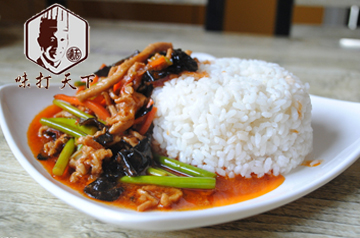 盖浇饭是一种古老的汉族小吃。属于西北甘肃地区叫法,东北叫烩饭,广东叫碟头饭,还有的地方只是叫咖喱土豆饭,咖喱鸡饭,麻婆豆腐饭,番茄蛋饭,番茄牛肉饭,以此类推这样子,其实都是菜和饭放在一个盘子里吃,菜浇在饭上,由此称作盖浇饭。